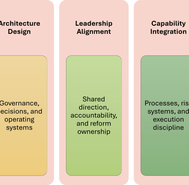 We support institutions move from fragmented roles and unclear authority toward structured execution. Work may include: